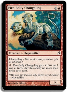 Changeling (This card is every creature type at all times.) R: Fire-Belly Changeling gets +1/+0 until end of turn. Play this ability no more than twice each turn.