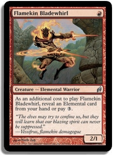 As an additional cost to play Flamekin Bladewhirl, reveal an Elemental card from your hand or pay 3.