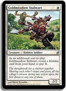 As an additional cost to play Goldmeadow Stalwart, reveal a Kithkin card from your hand or pay 3.