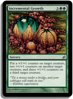Put a +1/+1 counter on target creature, two +1/+1 counters on another target creature, and three +1/+1 counters on a third target creature.