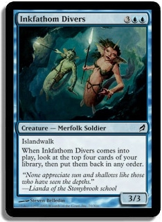 Islandwalk When Inkfathom Divers comes into play, look at the top four cards of your library, then put them back in any order.