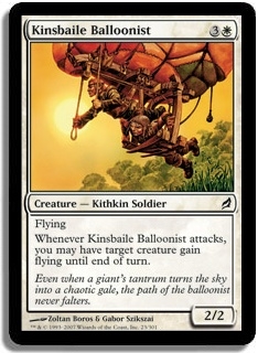 Flying Whenever Kinsbaile Balloonist attacks, you may have target creature gain flying until end of turn.