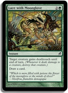 Target creature gains deathtouch until end of turn. (Whenever it deals damage to a creature, destroy that creature.) Draw a card.