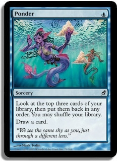 Look at the top three cards of your library, then put them back in any order. You may shuffle your library. Draw a card.