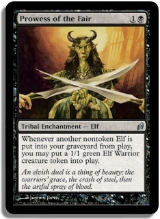 Whenever another nontoken Elf is put into your graveyard from play, you may put a 1/1 green Elf Warrior creature token into play.