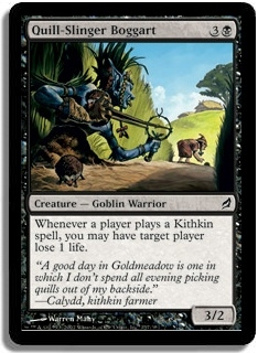 Whenever a player plays a Kithkin spell, you may have target player lose 1 life.