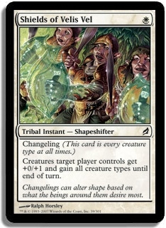 Changeling (This card is every creature type at all times.) Creatures target player controls get +0/+1 and gain all creature types until end of turn.