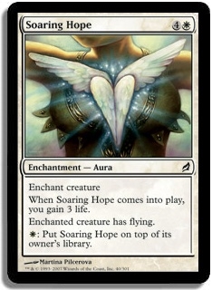 Enchant creature When Soaring Hope comes into play, you gain 3 life. Enchanted creature has flying. W: Put Soaring Hope on top of its owner's library.
