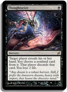 Target player reveals his or her hand. You choose a nonland card from it. That player discards that card. You lose 2 life.