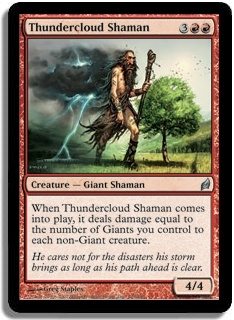 When Thundercloud Shaman comes into play, it deals damage equal to the number of Giants you control to each non-Giant creature.