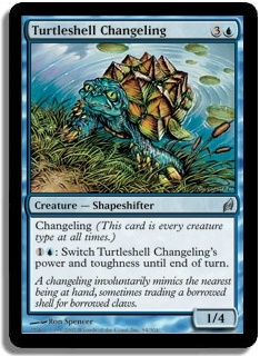 Changeling (This card is every creature type at all times.) 1U: Switch Turtleshell Changeling's power and toughness until end of turn.
