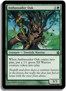 When Ambassador Oak comes into play, put a 1/1 green Elf Warrior creature token into play.