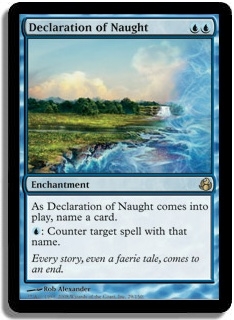 As Declaration of Naught comes into play, name a card. U: Counter target spell with that name.