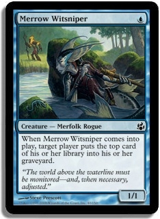 When Merrow Witsniper comes into play, target player puts the top card of his or her library into his or her graveyard.