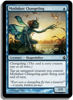 Changeling (This card is every creature type at all times.) Tap an untapped creature you control: Mothdust Changeling gains flying until end of turn.