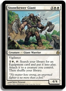 Vigilance 1W, T Search your library for an Equipment card and put it into play. Attach it to a creature you control. Then shuffle your library.