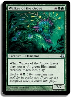 When Walker of the Grove leaves play, put a 4/4 green Elemental creature token into play. Evoke 4G (You may play this spell for its evoke cost. If you do, it's sacrificed when it comes into play.)