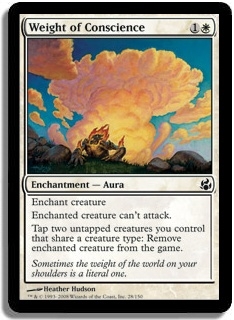Enchant creature Enchanted creature can't attack. Tap two untapped creatures you control that share a creature type: Remove enchanted creature from the game.