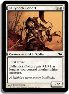 First strike Ballynock Cohort gets +1/+1 as long as you control another white creature.