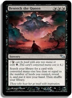 (o(2/b) can be paid with any two mana or with B. This card's converted mana cost is 6.) Search your library for a card with converted mana cost less than or equal to the number of lands you control, reveal it, and put it into your hand. Then shuffle your library.