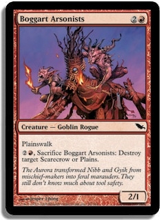Plainswalk 2R, Sacrifice Boggart Arsonists: Destroy target Scarecrow or Plains.
