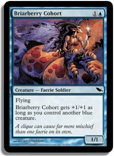 Flying Briarberry Cohort gets +1/+1 as long as you control another blue creature.