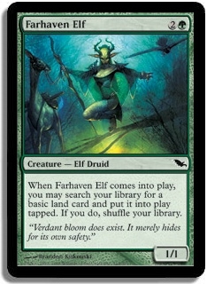 When Farhaven Elf comes into play, you may search your library for a basic land card and put it into play tapped. If you do, shuffle your library.