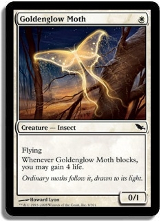 Flying Whenever Goldenglow Moth blocks, you may gain 4 life.