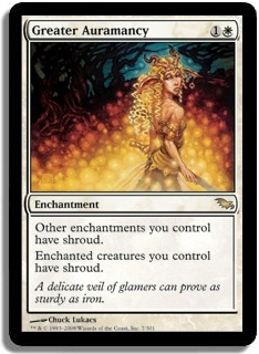 Other enchantments you control have shroud. Enchanted creatures you control have shroud.