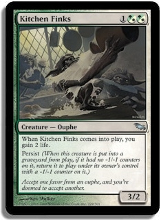 When Kitchen Finks comes into play, you gain 2 life. Persist (When this creature is put into a graveyard from play, if it had no -1/-1 counters on it, return it to play under its owner's control with a -1/-1 counter on it.)