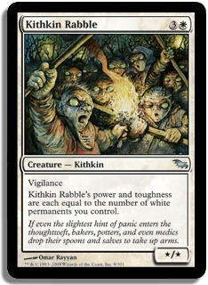 Vigilance Kithkin Rabble's power and toughness are each equal to the number of white permanents you control.