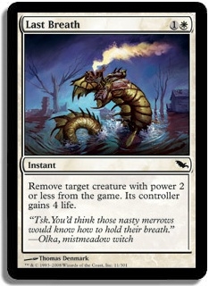 Remove target creature with power 2 or less from the game. Its controller gains 4 life.