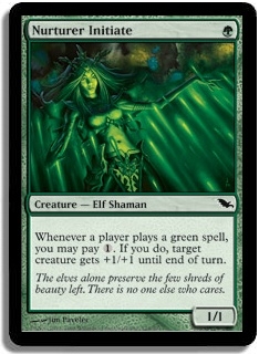 Whenever a player plays a green spell, you may pay 1. If you do, target creature gets +1/+1 until end of turn.