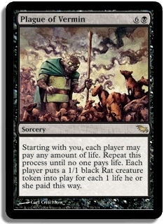 Starting with you, each player may pay any amount of life. Repeat this process until no one pays life. Each player puts a 1/1 black Rat creature token into play for each 1 life he or she paid this way.