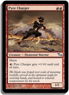 Haste R: Pyre Charger gets +1/+0 until end of turn.