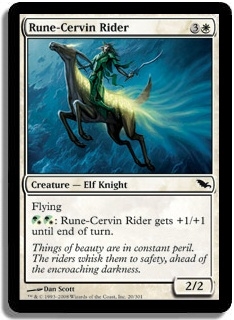 Flying o(g/w)o(g/w): Rune-Cervin Rider gets +1/+1 until end of turn.
