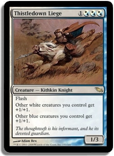 Flash Other white creatures you control get +1/+1. Other blue creatures you control get +1/+1.