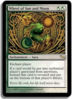 Enchant player If a card would be put into enchanted player's graveyard from anywhere, instead that card is revealed and put on the bottom of that player's library.