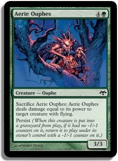 Sacrifice Aerie Ouphes: Aerie Ouphes deals damage equal to its power to target creature with flying. Persist (When this creature is put into a graveyard from play, if it had no -1/-1 counters on it, return it to play under its owner's control with a -1/-1 counter on it.)