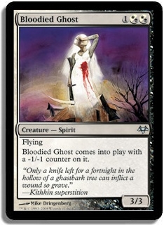 Flying Bloodied Ghost comes into play with a -1/-1 counter on it.