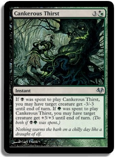 If B was spent to play Cankerous Thirst, you may have target creature get -3/-3 until end of turn. If G was spent to play Cankerous Thirst, you may have target creature get +3/+3 until end of turn. (Do both if BG was spent.)