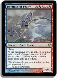 Flying At the beginning of your upkeep, you may gain control of target permanent until end of turn. If you do, untap it and it gains haste until end of turn.