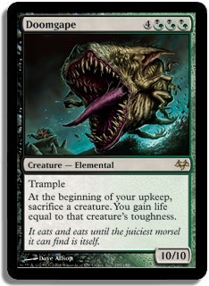 Trample At the beginning of your upkeep, sacrifice a creature. You gain life equal to that creature's toughness.