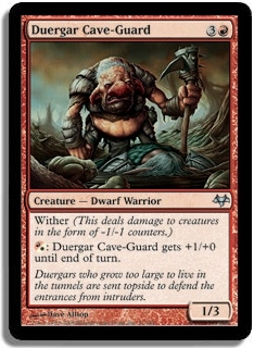 Wither (This deals damage to creatures in the form of -1/-1 counters.) o(r/w): Duergar Cave-Guard gets +1/+0 until end of turn.