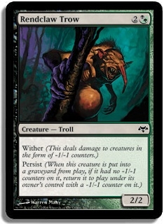 Wither (This deals damage to creatures in the form of -1/-1 counters.) Persist (When this creature is put into a graveyard from play, if it had no -1/-1 counters on it, return it to play under its owner's control with a -1/-1 counter on it.)