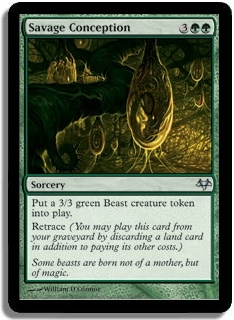 Put a 3/3 green Beast creature token into play. Retrace (You may play this card from your graveyard by discarding a land card in addition to paying its other costs.)