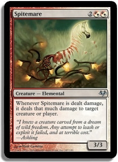 Whenever Spitemare is dealt damage, it deals that much damage to target creature or player.