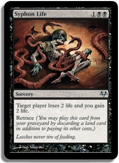 Target player loses 2 life and you gain 2 life. Retrace (You may play this card from your graveyard by discarding a land card in addition to paying its other costs.)