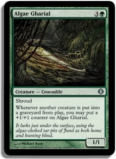 Shroud Whenever another creature is put into a graveyard from play, you may put a +1/+1 counter on Algae Gharial.