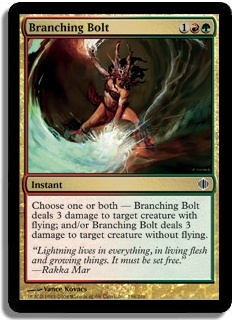 Choose one or both - Branching Bolt deals 3 damage to target creature with flying; and/or Branching Bolt deals 3 damage to target creature without flying.